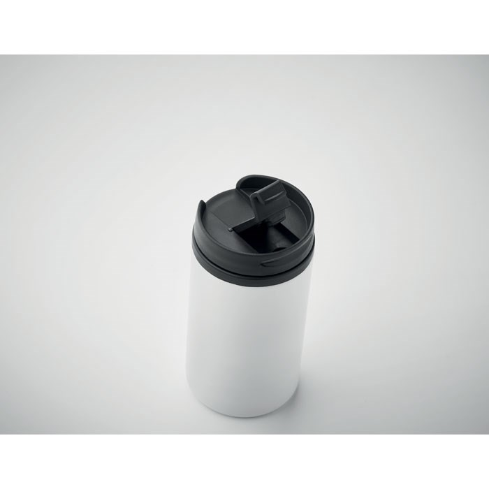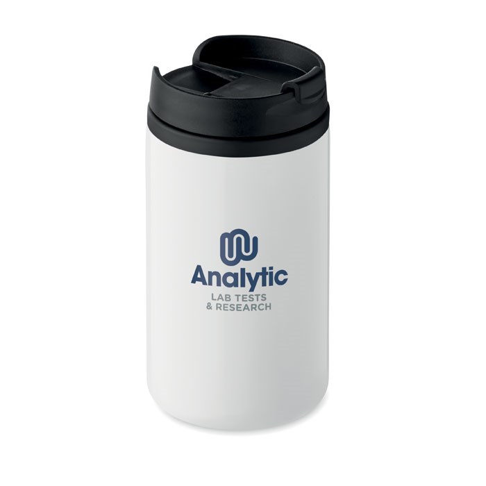 Doppelwandiger Trinkbecher aus Edelstahl. Innenbeschichtung aus PP. Füllmenge: 250 ml.