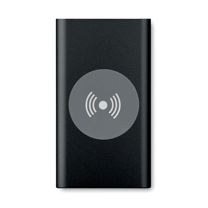 Induktive Ladestation mit 4000 mAh Powerbank aus recyceltem Aluminium. Inkl. Typ C Adapter. Ausgangsleistung: DC5V/1.0A. Kompatibel mit den neuesten Android Smartphones, iPhone® 8, 8S und X und höher.
