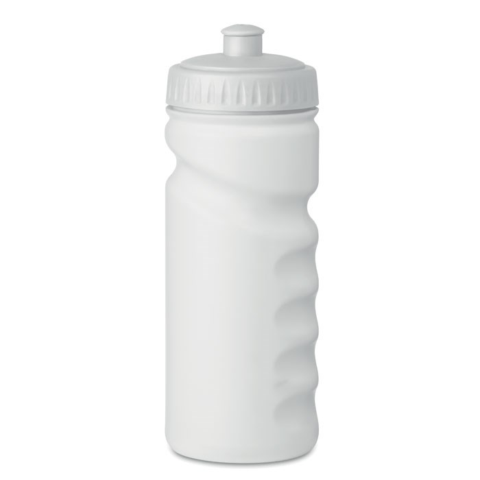 Sport-Trinkflasche aus BPA freiem, solidem PE Kunststoff. Mit praktischen Griffteil. Füllmenge: 500 ml.
