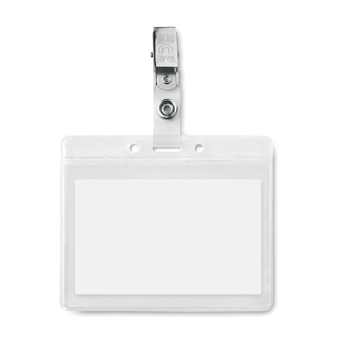 Transparente Kartenhülle aus PVC. Mit Metall-Clip.