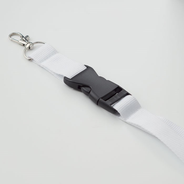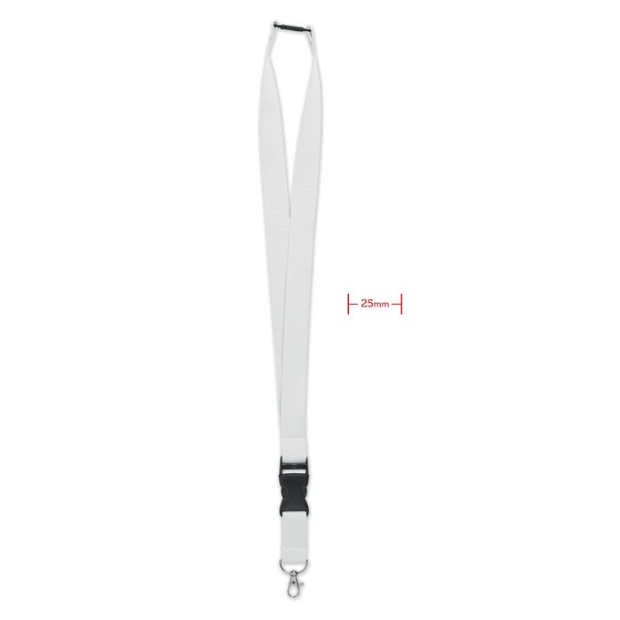 Lanyard mit Metallkarabiner, abnehmbarem Steckverschluss und Panikverschluss. 25mm Breite. Der Sublimationsdruck ist nur auf weißen Artikeln möglich.