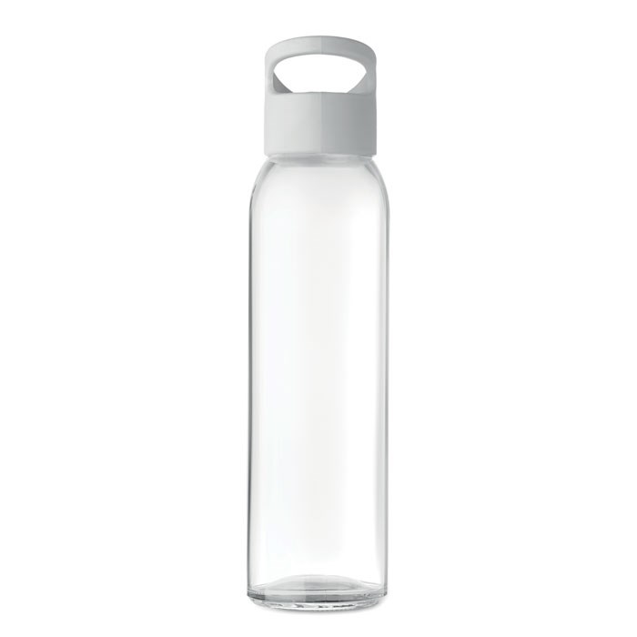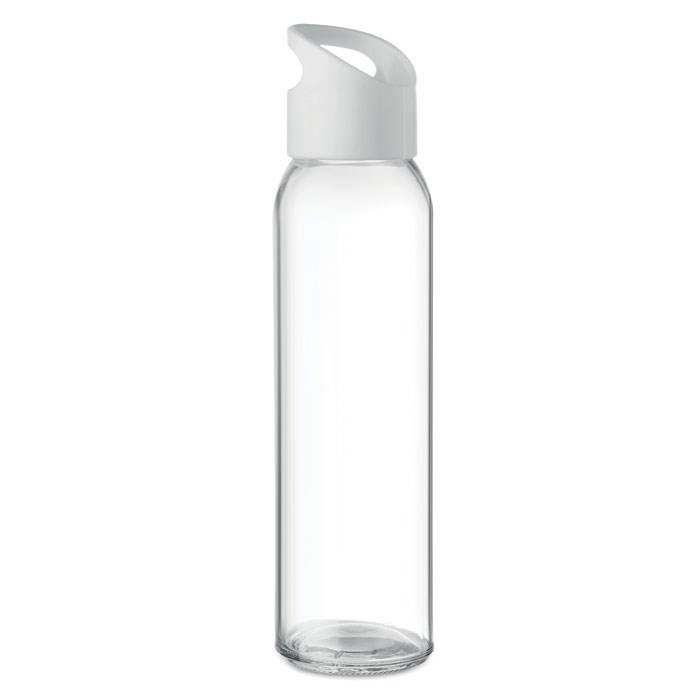 Trinkflasche aus Glas. Deckel aus PP mit Aussparung zum praktischen Aufhängen. Füllmenge: 470 ml. Nicht geeignet für kohlensäurehaltige Getränke. Auslaufsicher.
