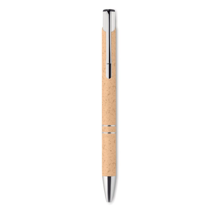 Druckkugelschreiber aus 50% Weizenstroh und 50% ABS-Material mit silbernen Details. Blaue Tinte.