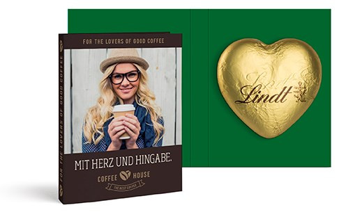 Werbekarte mit Lindt Schokoladen Herz 20 g