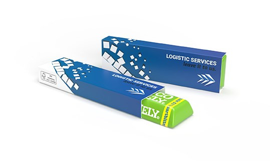 Ein Schokoriegel von Tony's Chocolonely im individuell veredelbaren Werbeschuber aus FSC®-zertifiziertem Karton. Die Tony's Chocolonely Schokoriegel sind erhältlich in drei verschiedenen Sorten: Zartbitter Mandel Meersalz, Karamell Meersalz und als klassischer Vollmilch Schokoriegel.