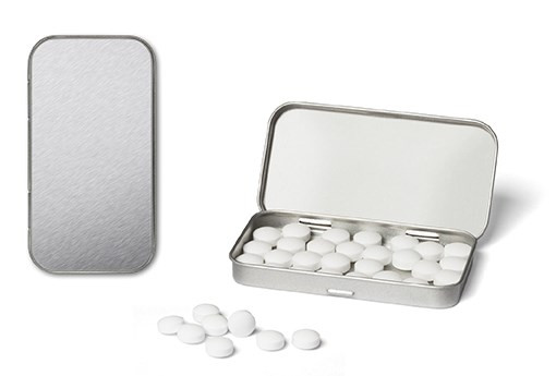 Individuell bedruckte Weißblechdose mit Scharnierdeckel im Hosentaschenformat. mehr
