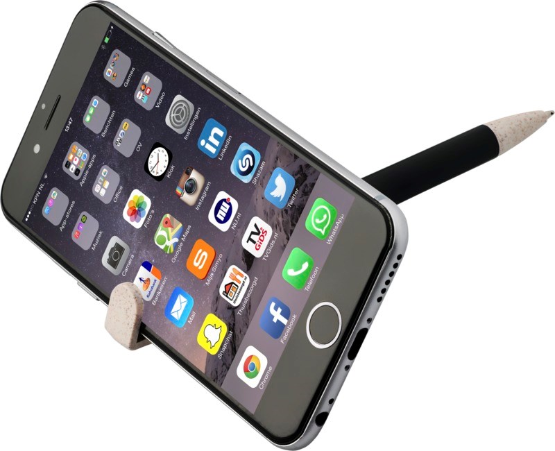 Kugelschreiber mit Telefonhalterung aus Weizenstroh inkl. Werbeanbringung
