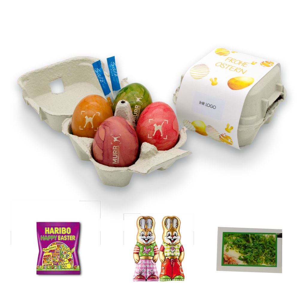 Die direkte Zusendung der Logo-Ostereier an eure Partner sowie die große Vielfalt an Verpackungs- und Bestückungsmöglichkeiten verstärken und individualisieren den Auftritt eures Unternehmens.