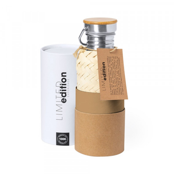 Flasche Limited Edition Diese Flasche im Öko-Design mit glatten Linien kombiniert ein Gehäuse aus Edelstahl, einen Strohhalmdeckel und einen Sicherheitsschraubverschluss mit einem Bambusboden. Inklusive Tragegriff. Fassungsvermögen 600ml. Aus der perfekten Kombination von Exklusivität und Design ist Limited Edition entstanden, eine besondere Kollektion von Werbeideen in limitierter Auflage. Ein neues Konzept, inspiriert durch die Verschmelzung von Premium-Artikeln mit den neuesten und innovativsten Trends und mit einer begrenzten Auswahl an Einheiten, die ein Geschenk zu einem einzigartigen und unvergesslichen Erlebnis machen. Exklusiver Limited Edition-Präsentationskoffer, Design durch gewerbliche Schutzrechte geschützt. Einschließlich einer Karte mit der Beschreibung von Limited Edition Experience auf recyceltem Karton.