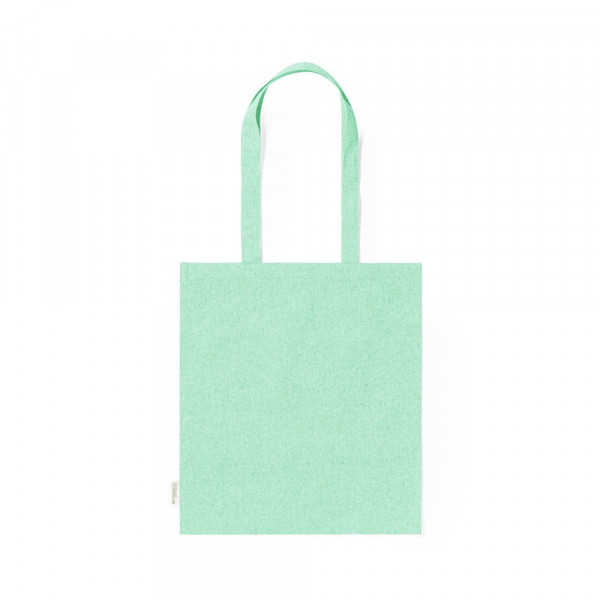Tasche aus 100% recyceltem Baumwollmaterial 140g/m2. GRS-Zertifizierung (Global Recycled Standard) die die recycelte Herkunft des für die Herstellung des Produkts verwendeten Materials garantiert. Genäht, mit 70 cm langen, verstärkten Griffen und in einer breiten Farbpalette erhältlich. Widerstandsfähigkeit bis zu 8 kg, einschließlich Etikett aus recycelter Baumwolle.