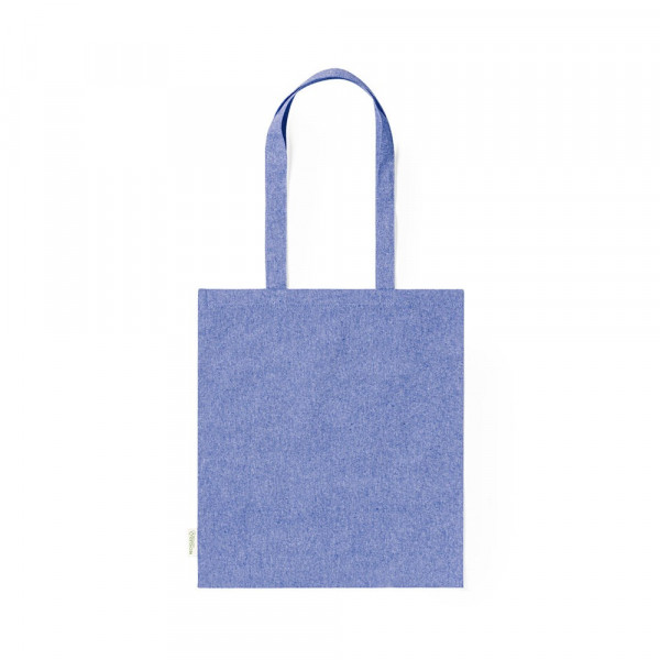 Tasche aus 100% recyceltem Baumwollmaterial 140g/m2. GRS-Zertifizierung (Global Recycled Standard) die die recycelte Herkunft des für die Herstellung des Produkts verwendeten Materials garantiert. Genäht, mit 70 cm langen, verstärkten Griffen und in einer breiten Farbpalette erhältlich. Widerstandsfähigkeit bis zu 8 kg, einschließlich Etikett aus recycelter Baumwolle.