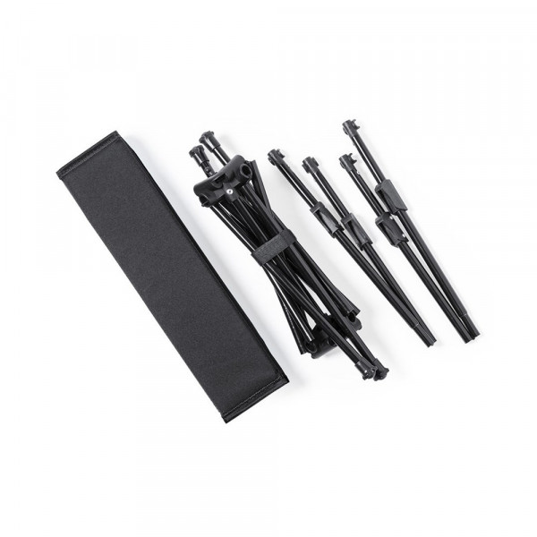 Klapptisch mit widerstandsfähigem, rohrförmigen Metallkörper und einer Oberfläche aus strapazierfähigem 600D-Polyester. Mit verstärkten Nähten und rutschfesten Beinen. Leicht faltbar und kompakt in der Größe, präsentiert in einer individuellen Tasche.