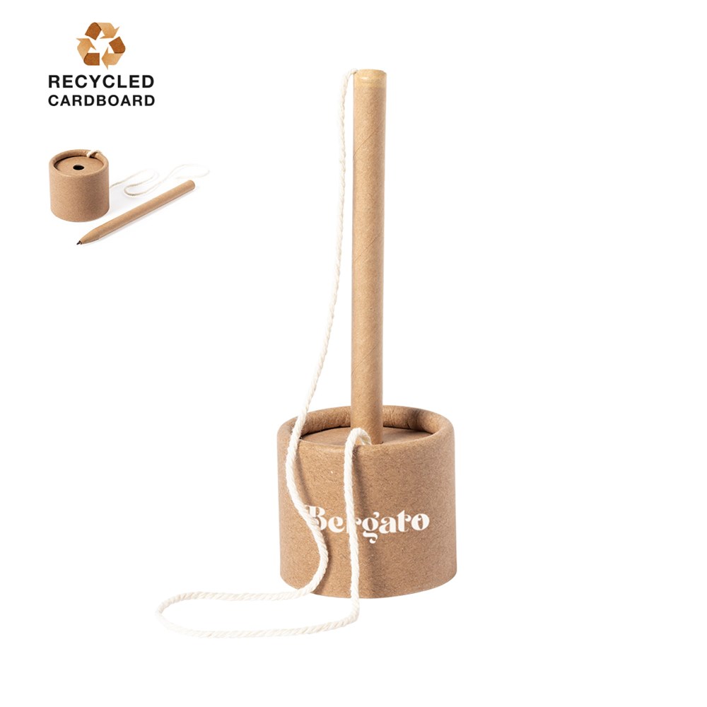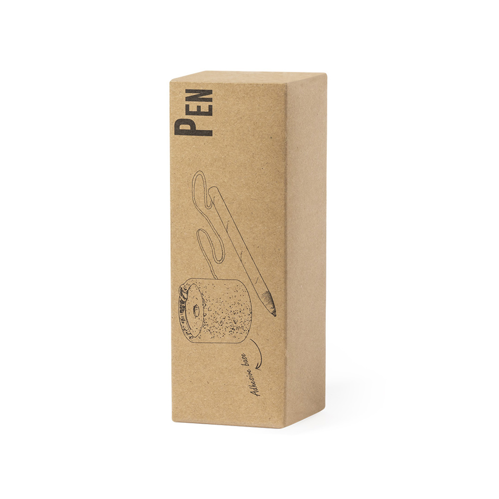Linie "Natur" Kugelschreiber mit blauer Tinte und Halter aus recyceltem Karton hergestellt. Inklusive Schnur und Sockel mit 3M-Kleber, extra starke Fixierung und rückstandsfrei beim Ablösen.