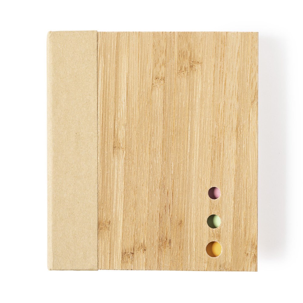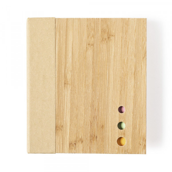 Linie "Natur" Notizzettelbox mit festen Bambusabdeckungen. Mit 115 Kraft-Haftnotizen, 115 mittleren Haftnotizen und 420 Mini-Haftnotizen.