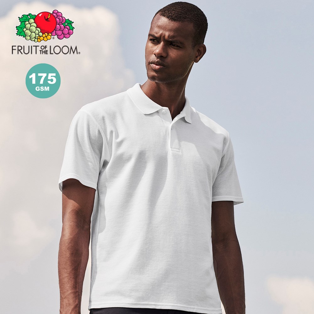 Weißes Poloshirt für Erwachsene Original von Fruit Of The Loom. Hergestellt aus 100% Baumwoll-Piqué-Material 175g/m2. Weicher Griff und klassischer Schnitt, mit Seitennähten für optimale Passform und passender, verstärkter Zwei-Knopf-Klappe. Leicht abnehmbares Etikett und erhältlich in den Größen S, M, L, XL, XXL.