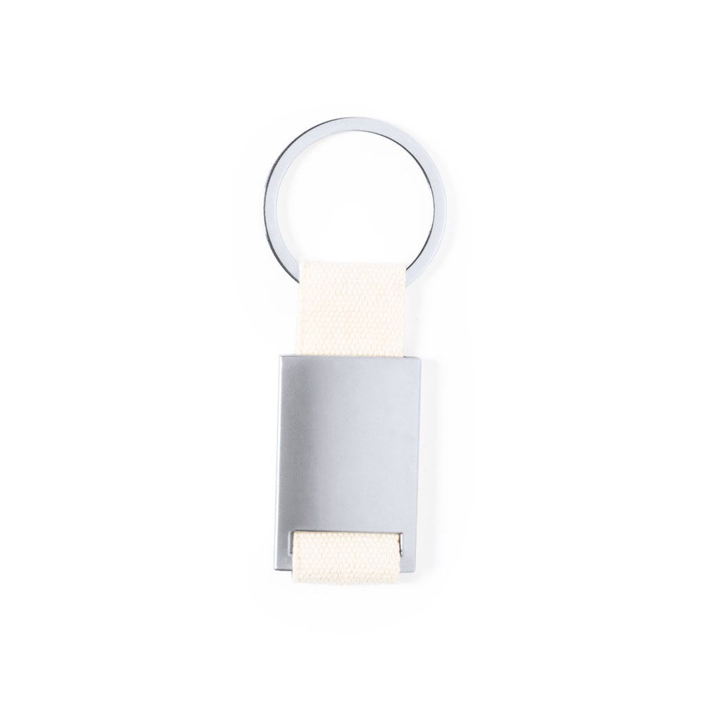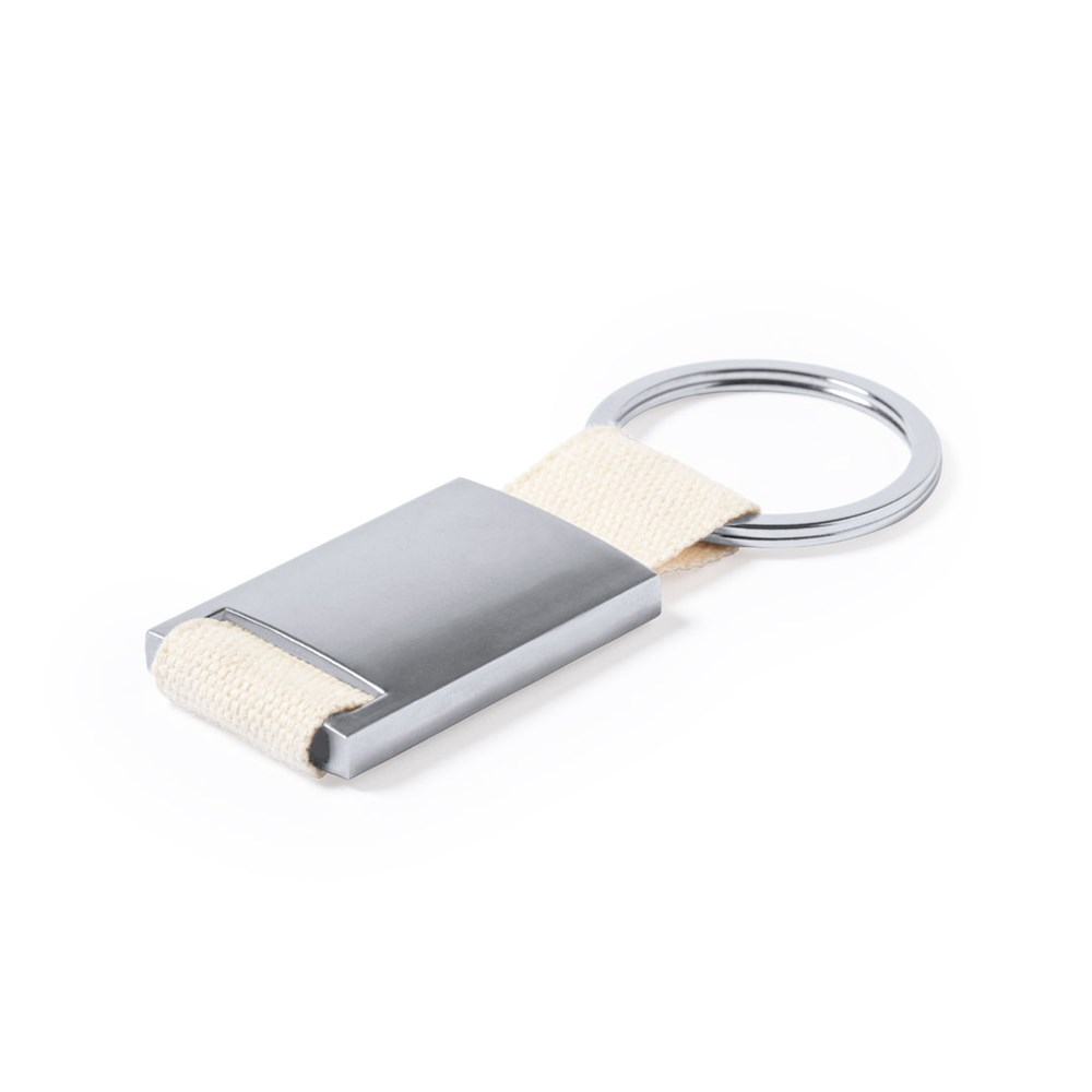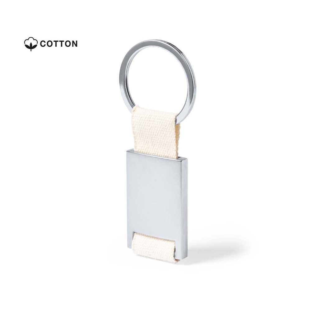Schlüsselanhänger mit silberfarbenem Metallgehäuse. 100% Baumwollband mit natürlichem Finish, mit... mehr