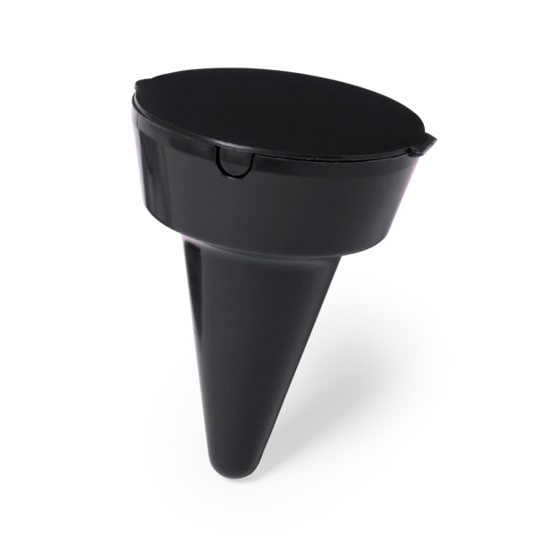 Robuster tragbarer Aschenbecher in verschiedenen lebendigen Farben, der in Sand u.ä. gesteckt werden kann.