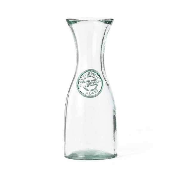 Linie "Natur" Karaffe mit 800ml Fassungsvermögen. Hergestellt in Europa aus recyceltem Glas mit GRS-Zertifizierung (Global Recycled Standard), die die recycelte Herkunft des für die Herstellung des Produkts verwendeten Materials bestätigt. Präsentiert in einer Schachtel aus recyceltem Karton mit Sichtfenster.