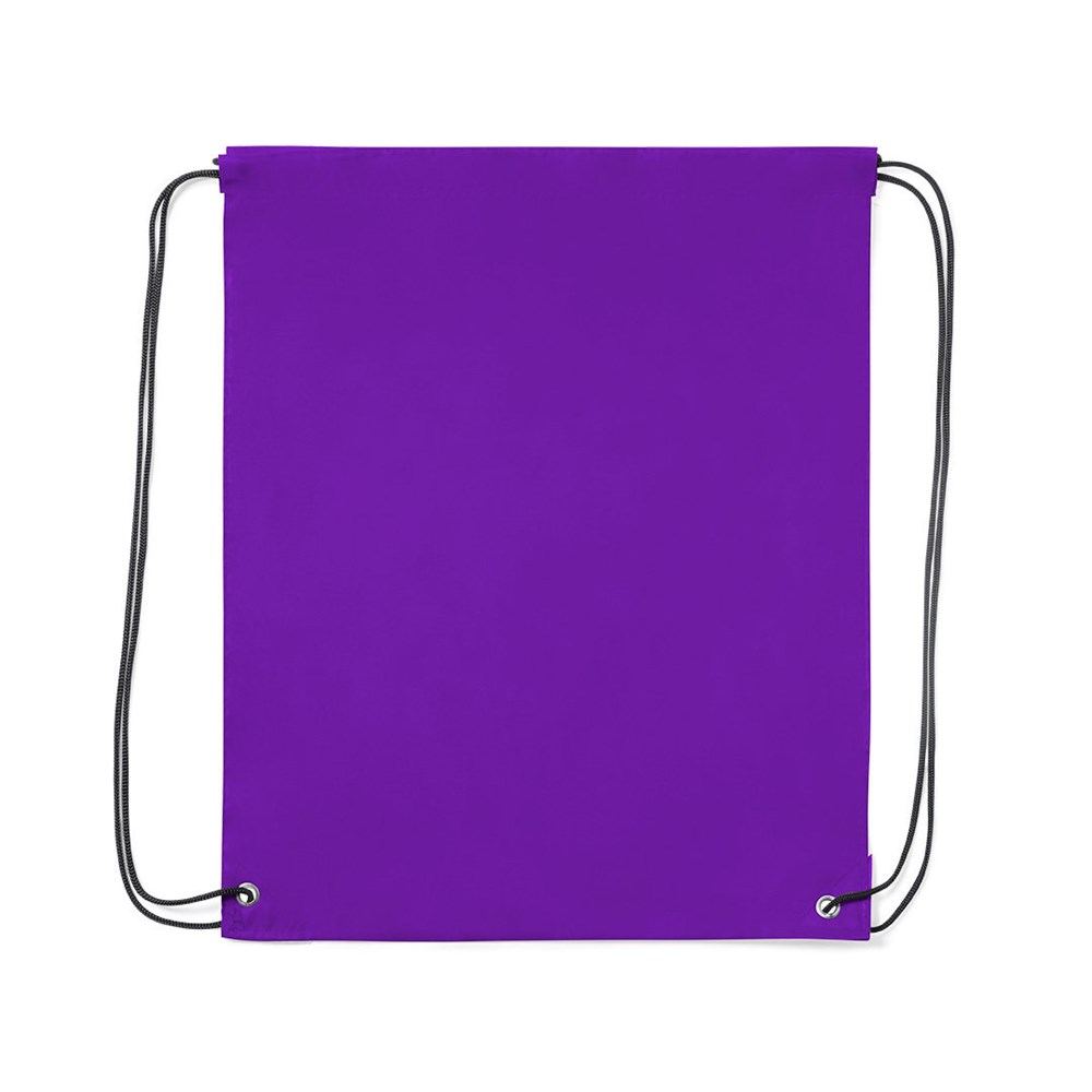Rucksack mit Kordelzug aus weichem Polyester in einer breiten Farbpalette. Mit schwarzen, selbstsichernden Schnüren, verstärkten Kunstlederecken in passender Farbe und starken Metallringen. Farbe weiß ist speziell für Sublimationsdruck geeignet.