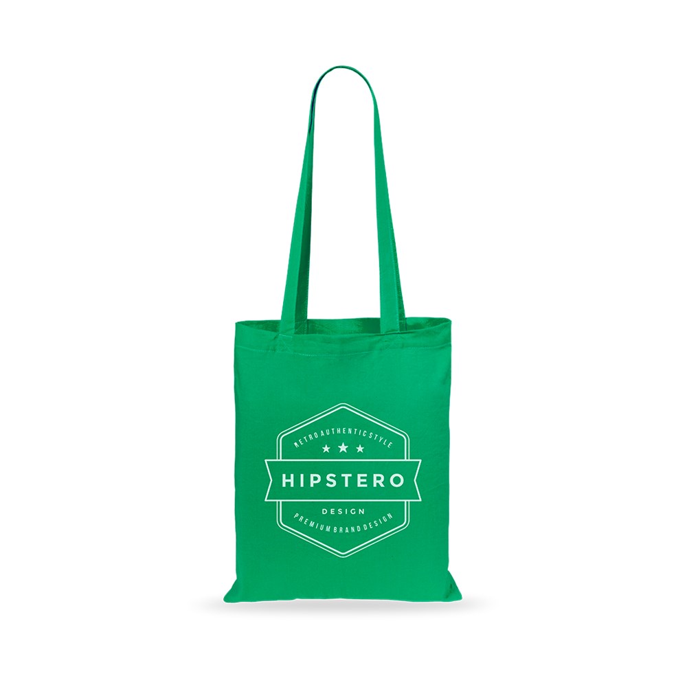 Tasche aus 100% Baumwolle in einer Reihe von leuchtenden Farben. Mit 70 cm langen Henkeln und Steppnähten. Belastbar bis zu einem Gewicht von 7 kg.