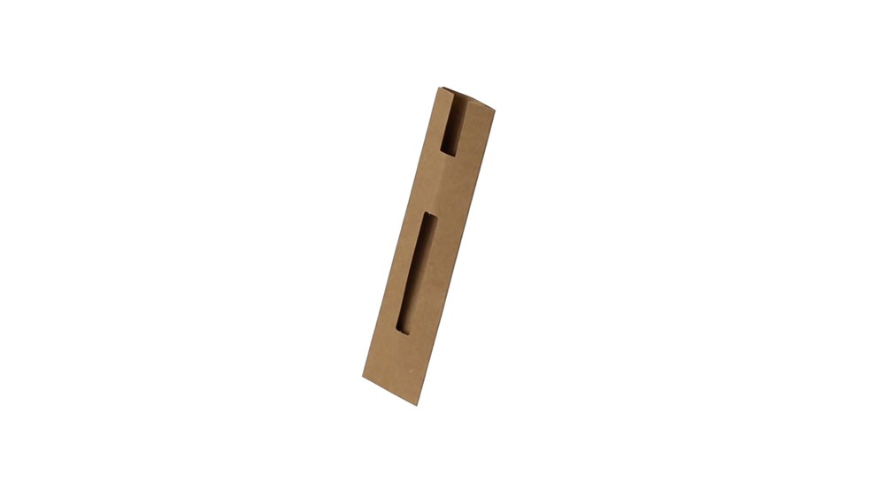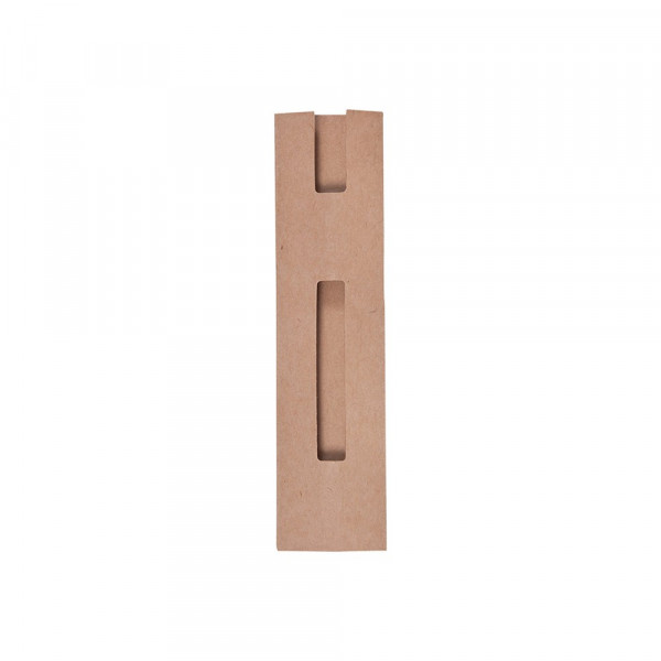 Etui für Kugelschreiber aus resistentem Recyclingkarton in Naturfarbe mit Fenster.
