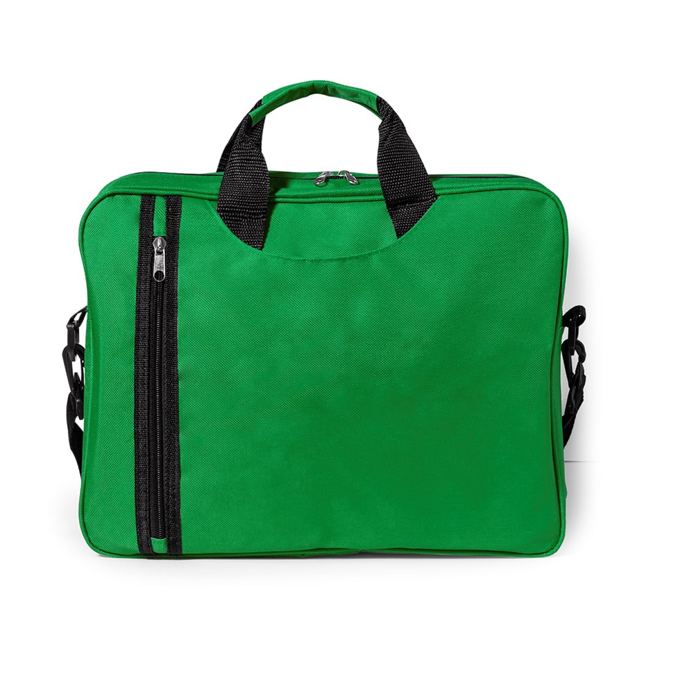 Dokumententasche mit Reißverschluss aus angenehm weichem 600D Polyester in lebendigen Farben. Mit origineller, vertikaler Fronttasche sowie Fach unter den Tragegriffen. Mit farblich passenden, verstärkten Tragegriffen und verstellbarem Schultergurt mit Karabinerbefestigung.