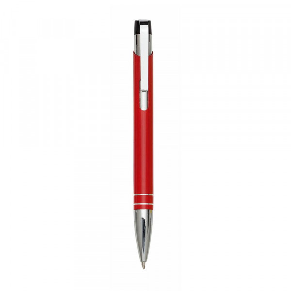 Origineller Druck-Kugelschreiber mit elegantem, zweifarbigem Design. Mit Aluminiumkörper mit Stanzung und glattem Finish in verschiedenen Farben. Gebogener Clip, Ringe und Spitze in Silber. Jumbo-Patrone mit blauer Tinte.