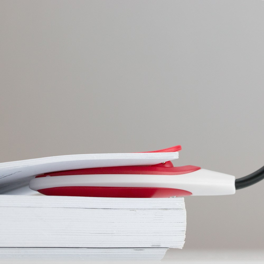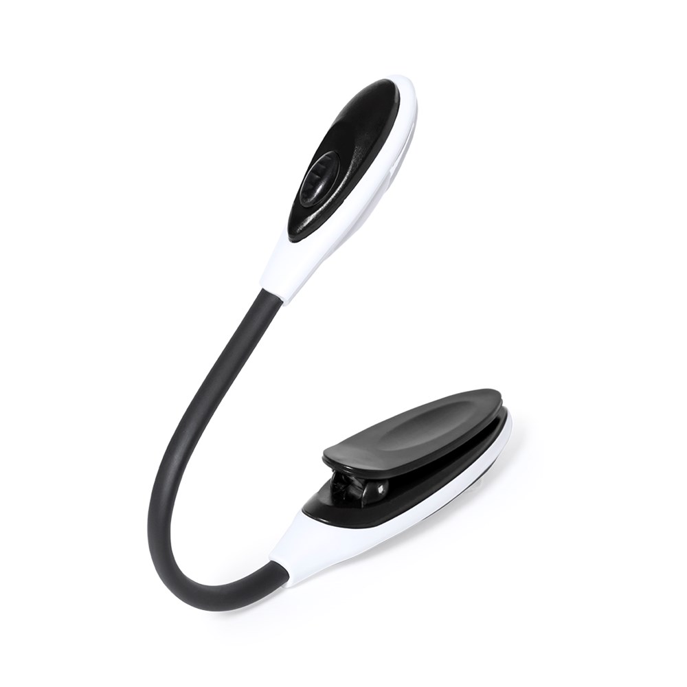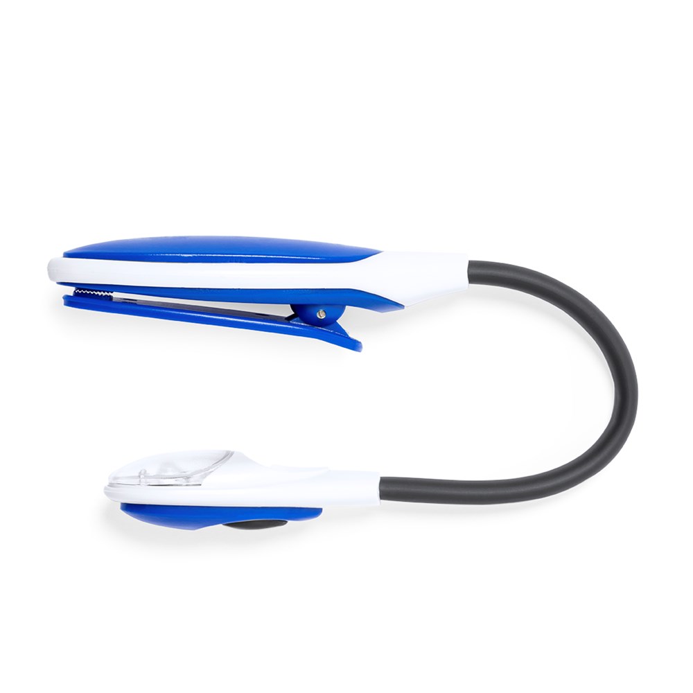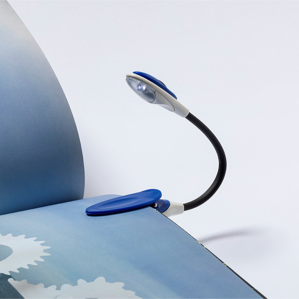 Flexible LED-Leselampe mit zweifarbigem Design und praktischer Klemme. Präsentiert in einer individuellen Box.