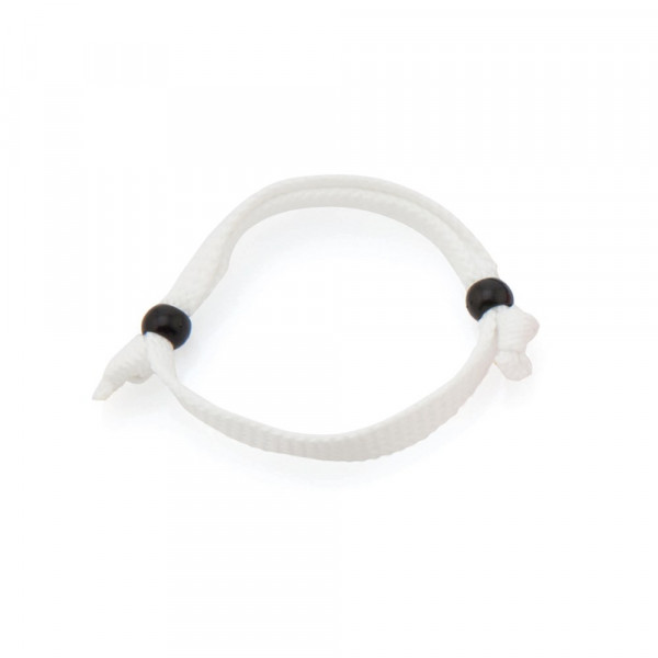 Verstellbares Polyester-Armband in einer Vielzahl von Farben. Mit geknoteten Enden und Einstellringen.