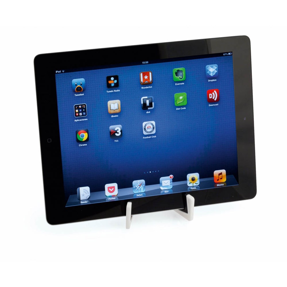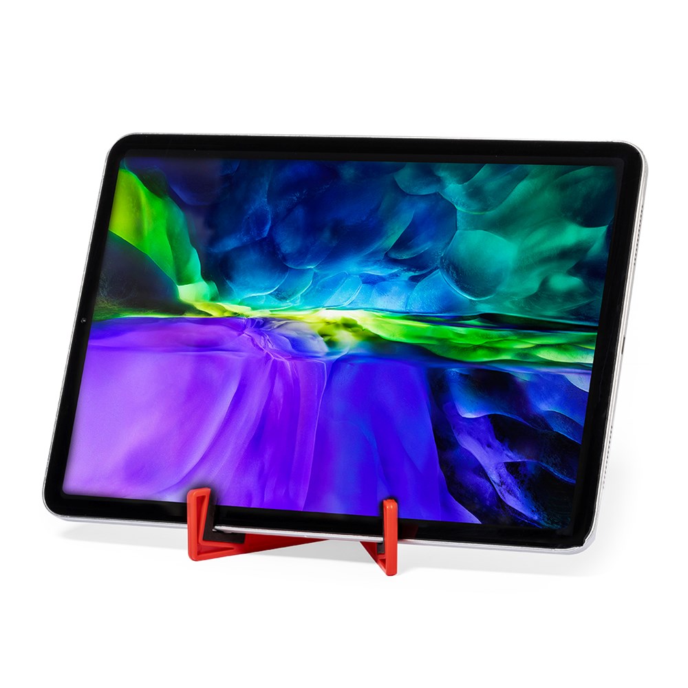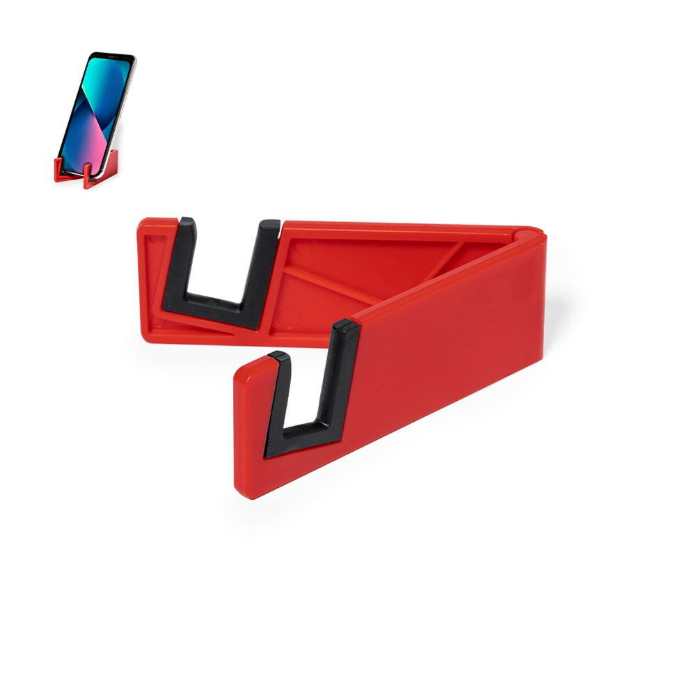 Ständer für Smartphones und Tablets in auffälligen Farben. Mit klappbaren Standbeinen und rutschfesten PVC-Stoppern. Speziell für den Tampondruck entwickelt.