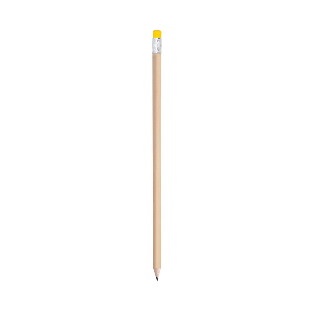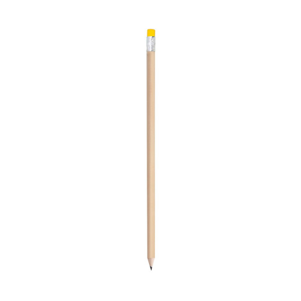 Holzstift mit Naturfinish. Mit rundem Griff und Radiergummi - Radiergummi in verschiedenen Farben erhältlich. Ungespitzte Spitze.
