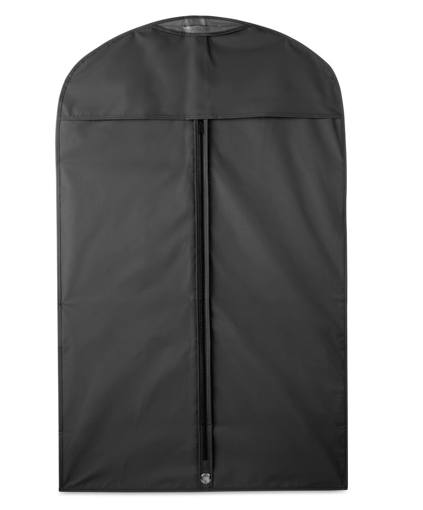 Anzugtasche aus weichem PEVA-Kunststoff in einer Vielzahl von Farben. Mit farblich passendem Reißverschluss und verstärktem Metallring für den Kleiderbügel.