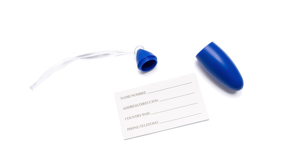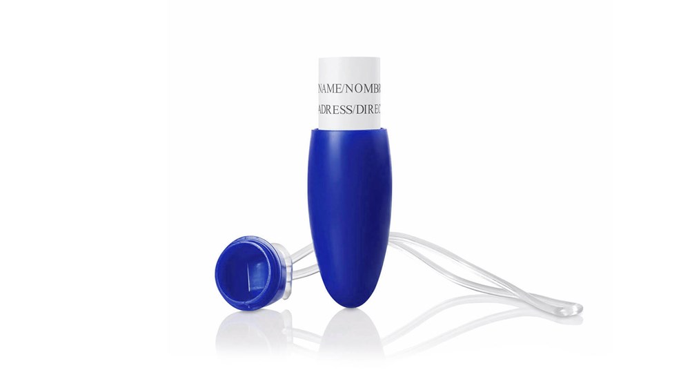 Origineller Kofferanhänger mit Abdeckung aus robustem Material in einer großen Auswahl an kräftigen Farben. Mit widerstandsfähigem Befestigungsband und eingerollter ID-Karte auf Spanisch und Englisch.