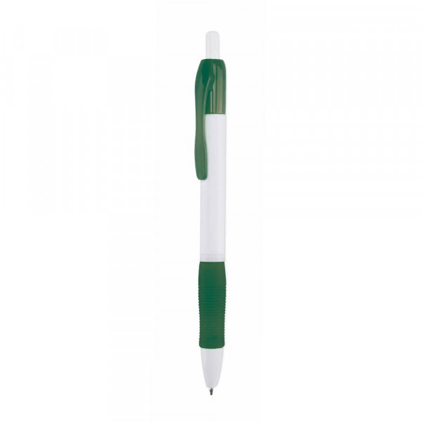 Klassischer Druck-Kugelschreiber mit auffälligem Design und solidem, weißem Schaft mit komfortablem Griff und farblich passendem Clip. Blaue Tinte.