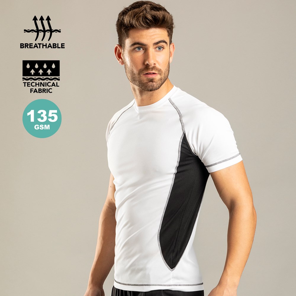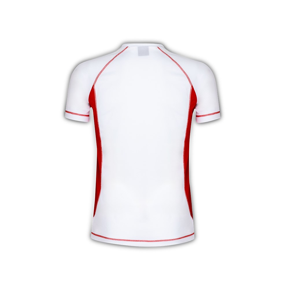 Funktions-T-Shirt für Erwachsene aus 100% atmungsaktivem Polyester (135 g/m2). Design in Weiß mit Verstärkungsnähten und Seiten in kräftigen Farben. Erhältlich in den Größen S, M, L, XL und XXL.