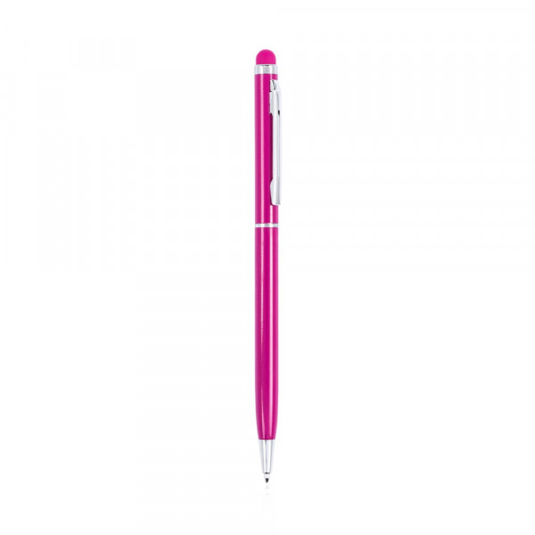 Dreh-Kugelschreiber mit integriertem Stylus und ultradünnem Gehäuse aus Aluminium mit geschmeidigem Metallic-Finish in verschiedenen Farben und farblich passendem Stylus. Kontrastdetails und Ringe in Silber. Blaue Tinte.