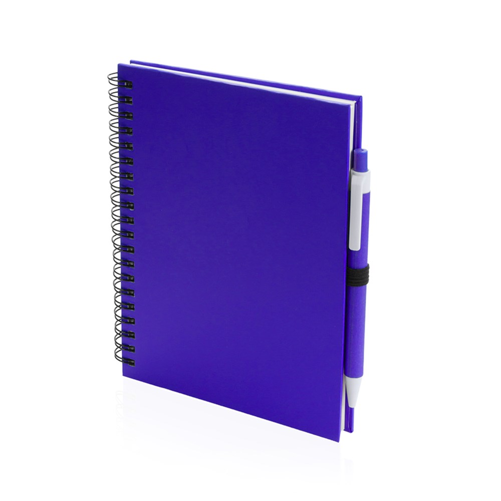 Set aus Notizbuch und Kugelschreiber. Ring-Notizbuch mit Soft-Touch-Einband aus recyceltem Karton und passendem Kugelschreiber. Enthält 70 unbedruckte Seiten mit Stifthalter. Erhältlich in einer großen Auswahl an Farben.