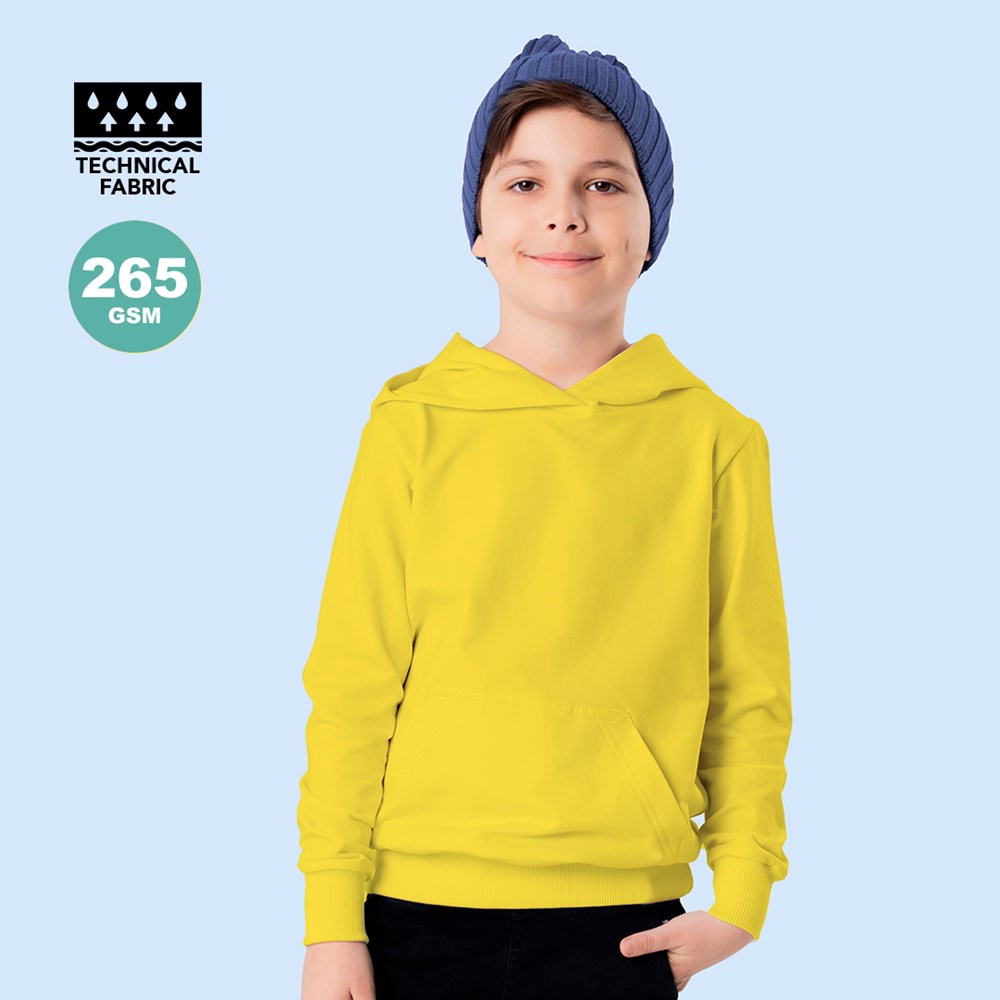 Funktions-Hoodie für Kinder in Unisex-Ausführung aus 100 % Polyester (265 g/m2). Mit Kapuze, Hoodieband und Kängurutasche. Erhältlich in verschiedenen kräftigen Farben und den Größen 4-5, 6-8 und 10-12.