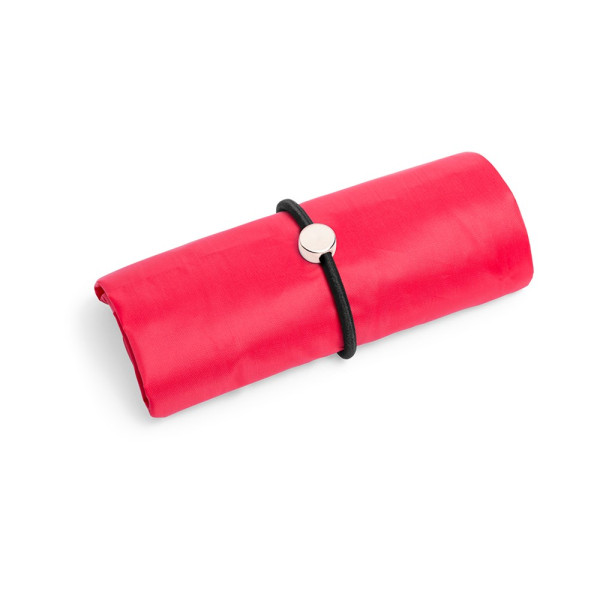 Faltbare Tasche in verschiedenen fröhlichen Farben aus weichem 190T Polyester. Mit Steppnähten und Gummiband zum Fixieren im gefalteten Zustand.