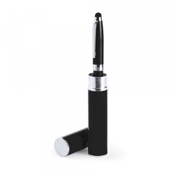 Dreh-Kugelschreiber mit integriertem Stylus und Metallgehäuse in kräftigen Farben mit Kontrastdetails und Ringen in Silber. Mit farblich passendem Stylus, sowie Jumbo-Patrone mit blauer Tinte. Präsentiert in einem originellen Metall-Etui in passender Farbe.