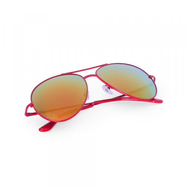 Sonnenbrille im Piloten-Stil mit UV-400-Schutz sowie Metallrahmen in kräftigen Farben und verspiegelten, farblich passenden Gläsern.