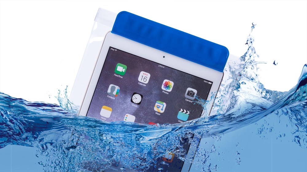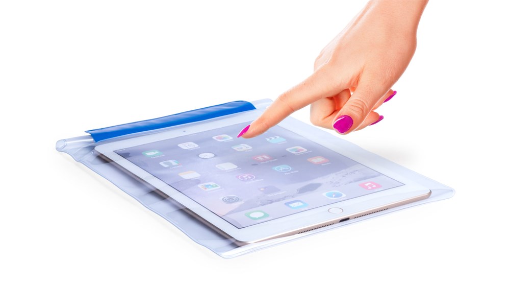 Praktische, wasserdichte, vielseitig einsetzbare PVC-Tasche im XL-Format mit taktiler Oberfläche, speziell für Tablets bis 9,7 Zoll entwickelt und mit doppeltem Sicherheitssystem für Wasserdichtigkeit. Mit Frontklappe in großer Farbauswahl.