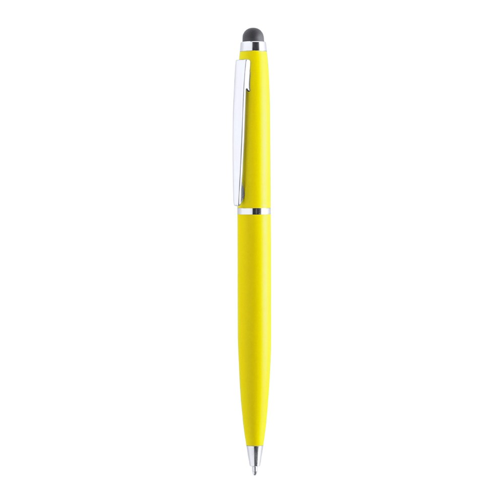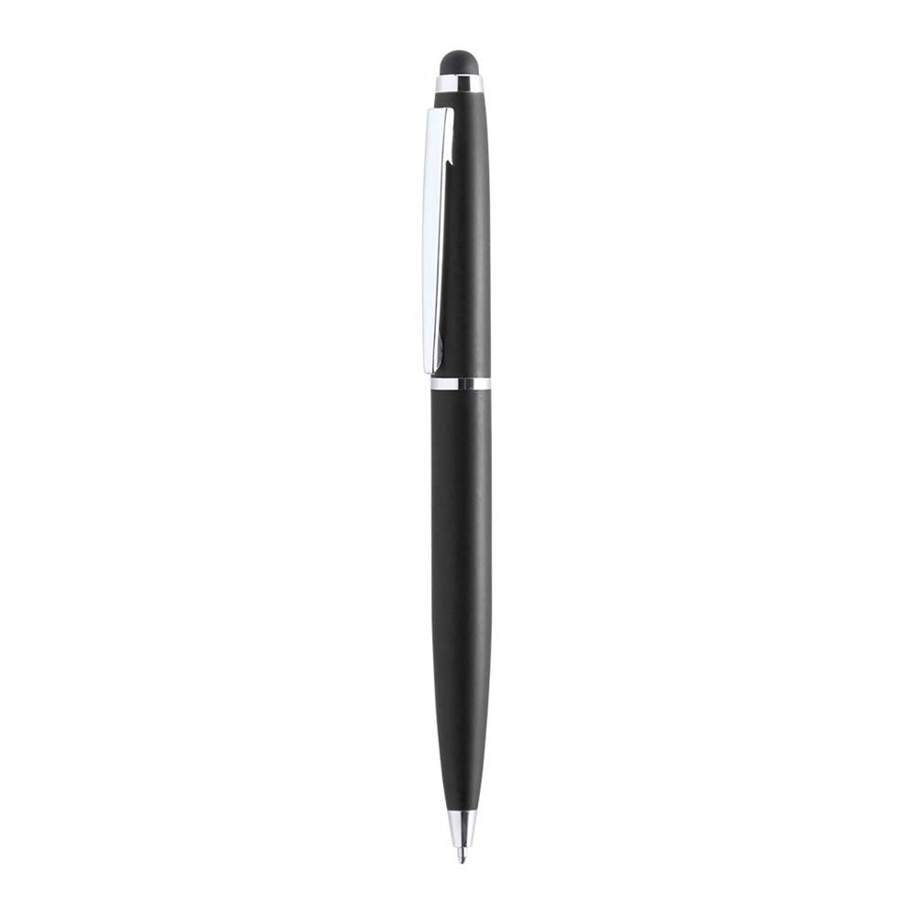 Dreh-Kugelschreiber mit Stylus und Metallgehäuse in kräftigen Farben. Kontrastdetails und Ringe in Silber. Blaue Tinte.