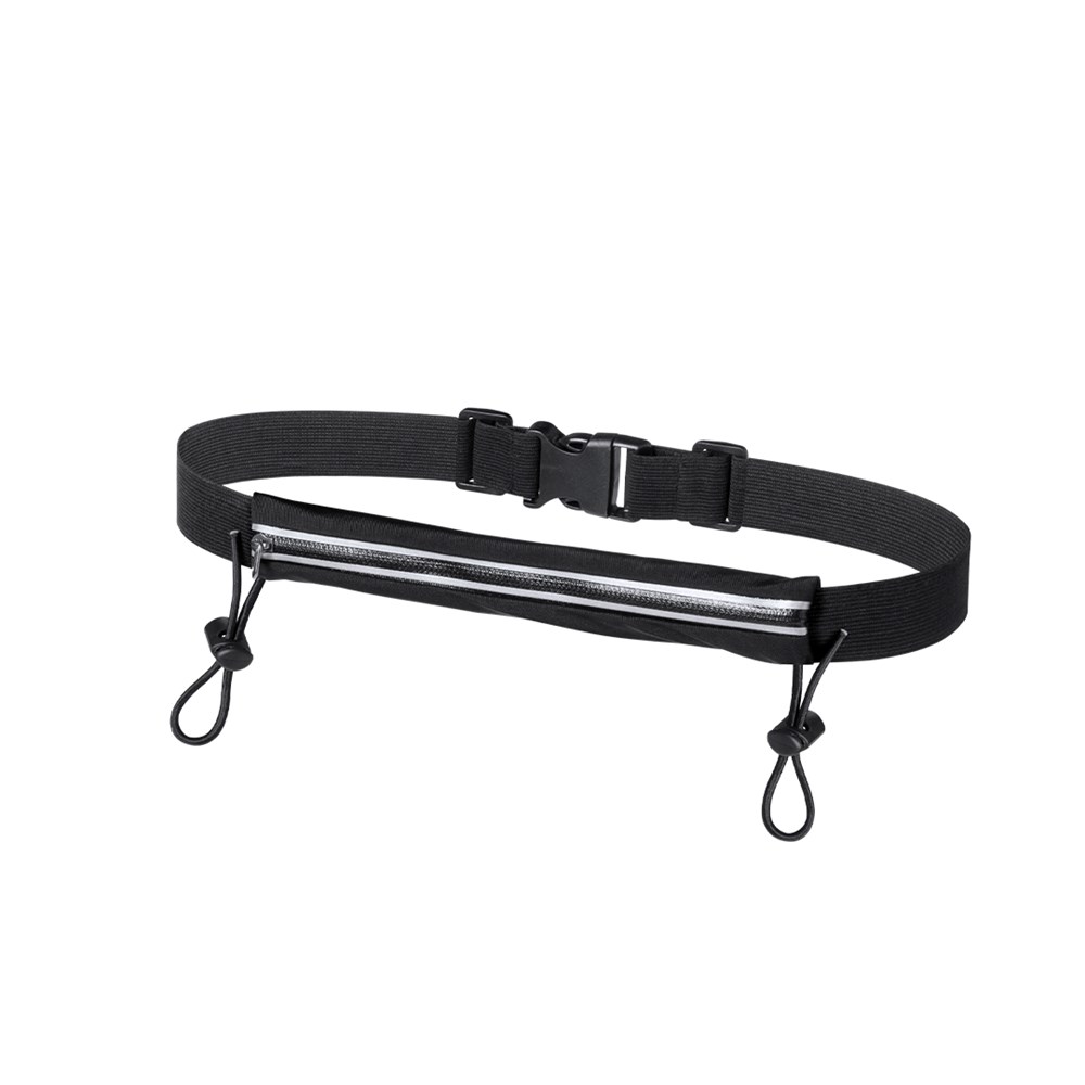 Hochwertige, spritzwasserresistente Gürteltasche mit speziellen Gummibändern zum Befestigen einer Startnummer. Hergestellt aus angenehm weichem Spandex-Material. Entwickelt für Sport- und Freizeitaktivitäten. Mit grauem Reißverschluss und Befestigungsgummis mit Stopper sowie verstellbarem, elastischem Gurt mit Schnallenverschluss.