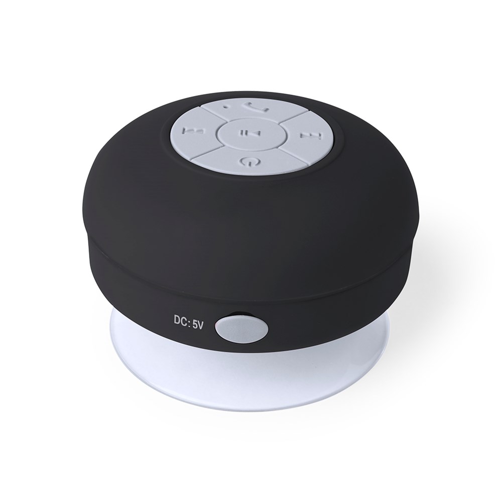 Lautsprecher mit Bluetooth 5.0-Verbindung und 3 W Leistung. Gummierte Oberfläche und spritzwassergeschützt, mit Silikon-Saugnapf mit hoher Haftkraft an der Basis. Freisprechfunktion, mit Ladekabel im Lieferumfang, kompatibel mit iOS und Android. Präsentiert in einer attraktiven Designbox, mit Bedienungsanleitung in Englisch und Spanisch. Erhältlich in einer großen Auswahl an Farben.