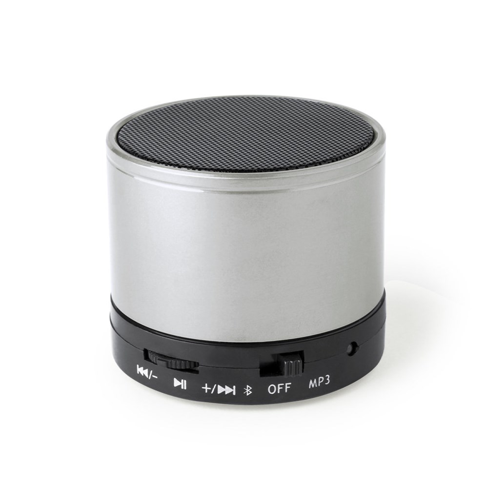 Kompakte Freisprecheinrichtung mit Bluetooth 5.0-Verbindung UND 3 W Leistung, Freisprechfunktion, Mini-SD-Kartenslot für bis zu 64 GB Kapazität, FM-Radiofunktion und Aux-Eingang über 3,5 mm Klinkenanschluss. Mit rutschfesten Gummifüßen an der Basis. Kompatibel mit iOS und Android, inklusive Ladekabel und 3,5-mm-Klinkenanschlusskabel. Präsentiert in einer attraktiven Designbox, mit Bedienungsanleitung in Englisch und Spanisch. Erhältlich in einer breiten Palette von Metallic-Farben.