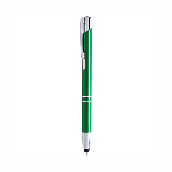 Druck-Kugelschreiber mit Stylus aus glänzendem Aluminium in lebhaften Farben. Jumbo-Patrone mit blauer Tinte.