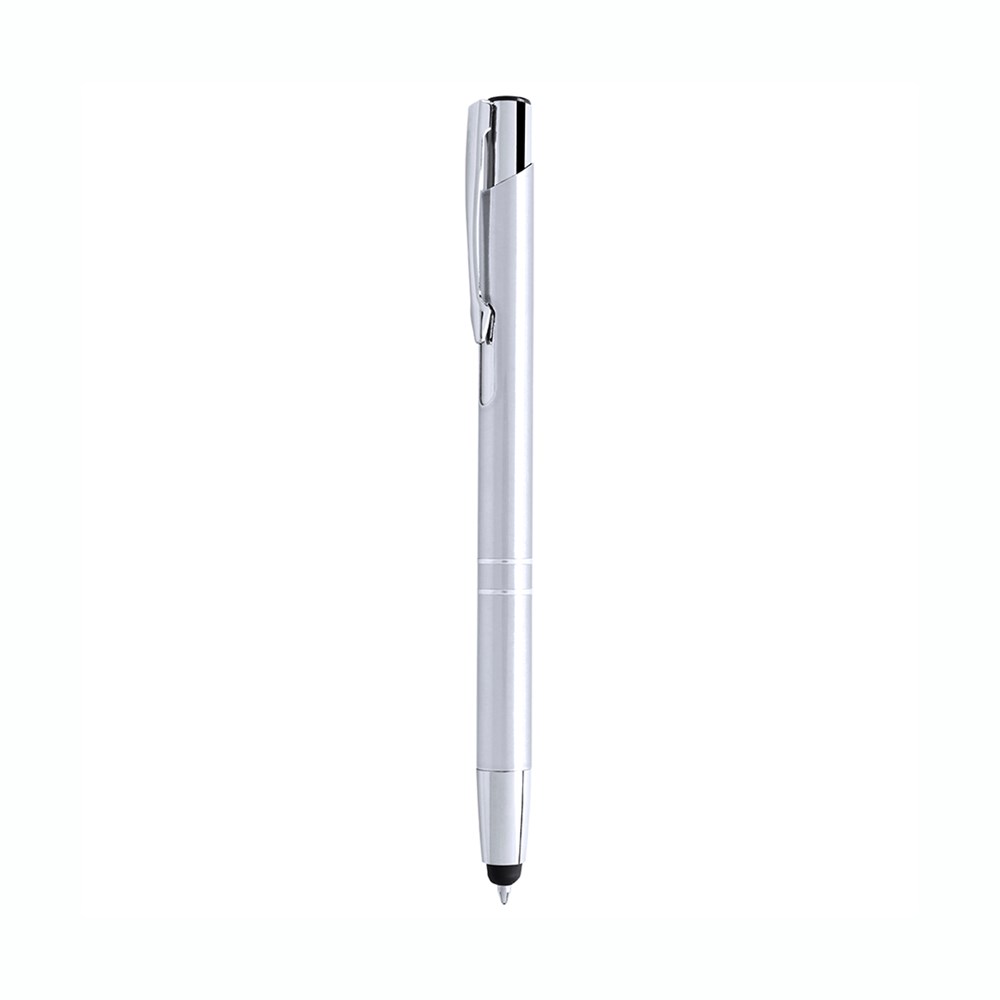Druck-Kugelschreiber mit Stylus aus glänzendem Aluminium in lebhaften Farben. Jumbo-Patrone mit blauer Tinte.