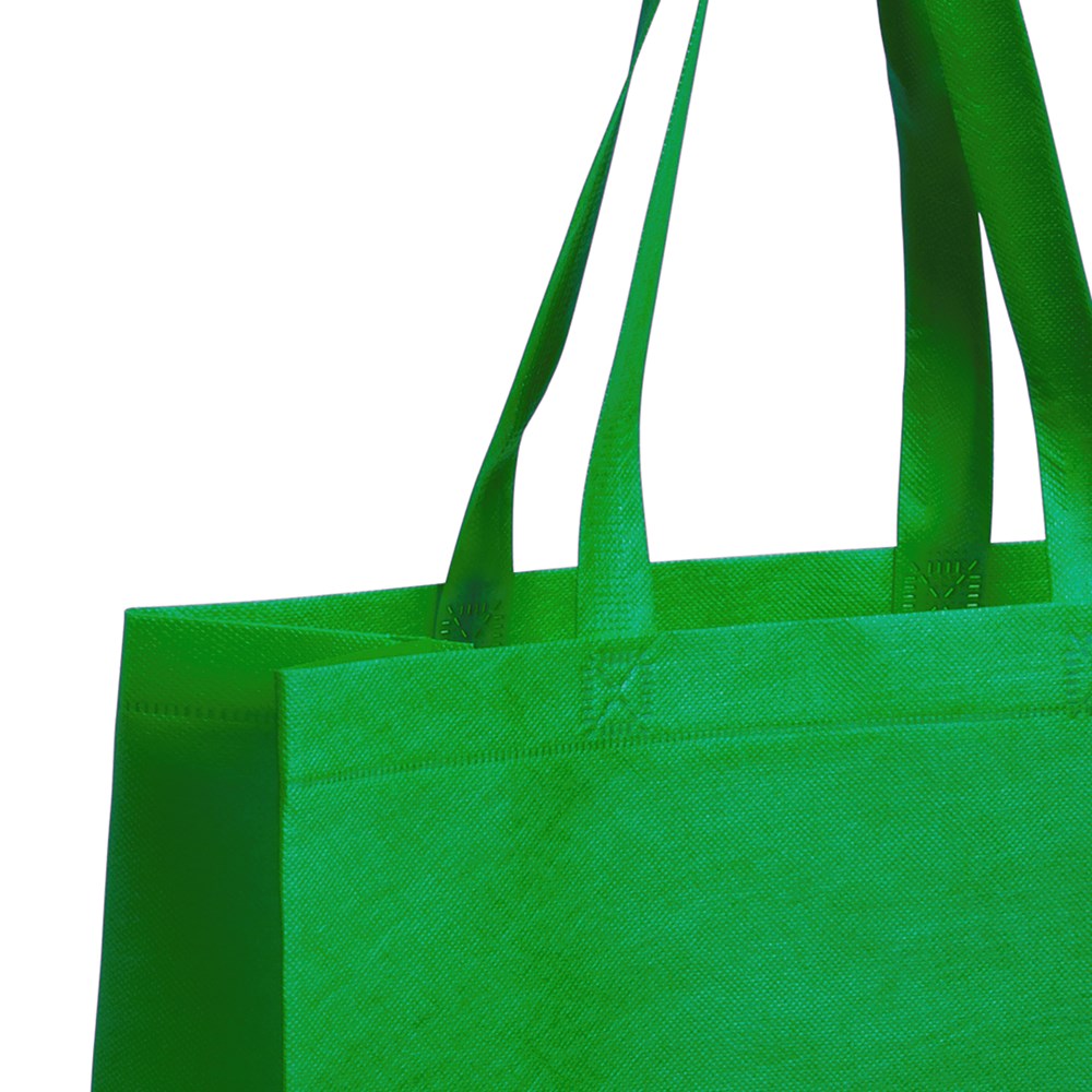 Non-Woven-Tasche aus hitzeversiegeltem Faservlies (80 g/m2) in einer Vielzahl von kräftigen Farben. Mit 50 cm langen, verstärkten Henkeln und Zwickel. Belastbar mit bis zu 9 kg.