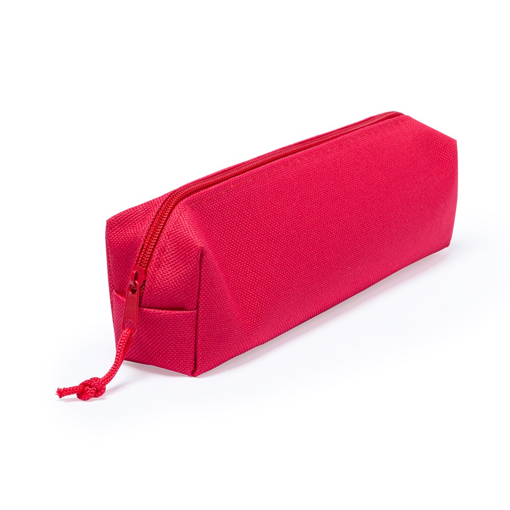 Etui aus resistentem 600D Polyester in verschiedenen lebendigen Farben. Mit Reißverschluss und farblich passendem Zugband für einfaches Öffnen.